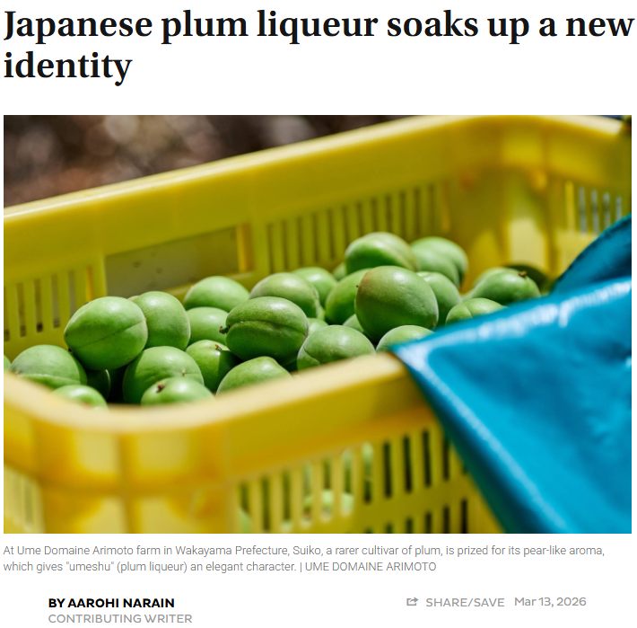 “Japanese plum liqueur soaks up a new identity” に、Ume Domaine ARIMOTO と Plumity が紹介されました。